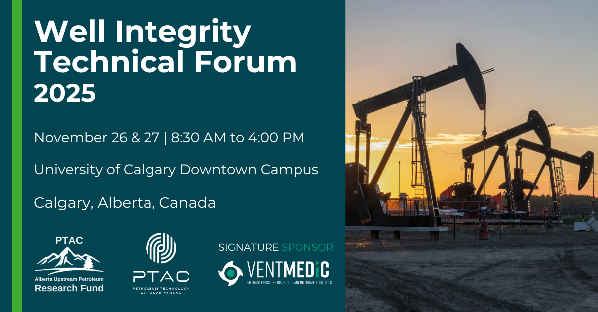 Join the Alberta Upstream Petroleum Research Fund (AUPRF) and PTAC Petroleum Technology Alliance Canada at the Well Integrity Technical Forum on November 26-27, 2025, at the University of Calgary Downtown Campus. This premier two-day event will bring together leading experts, researchers, and industry professionals to discover the latest advancements in well integrity, decommissioning, methane mitigation, and innovative barrier materials.